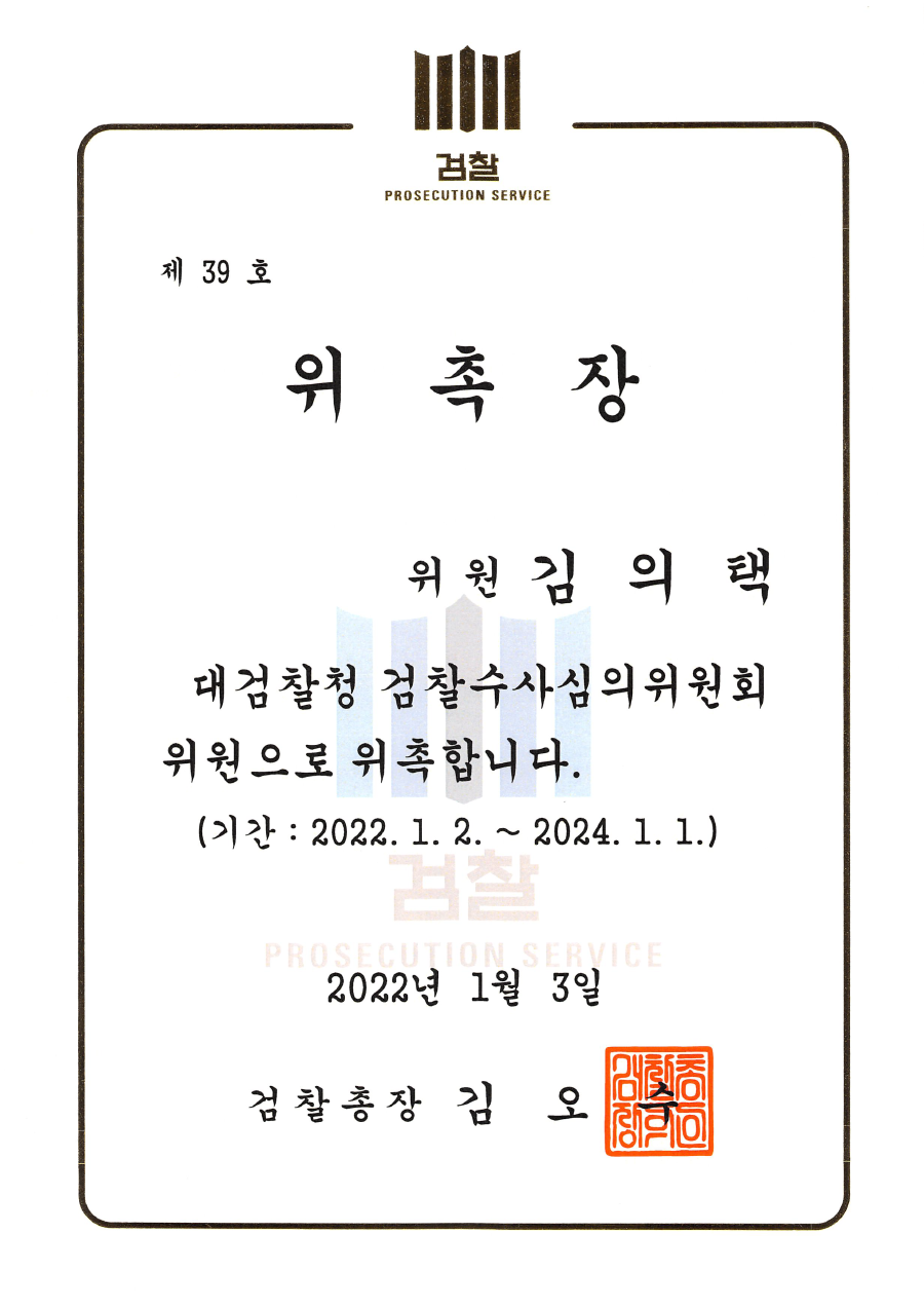 검찰 관련 대검찰청-검찰수사심의위원회위원-김의택