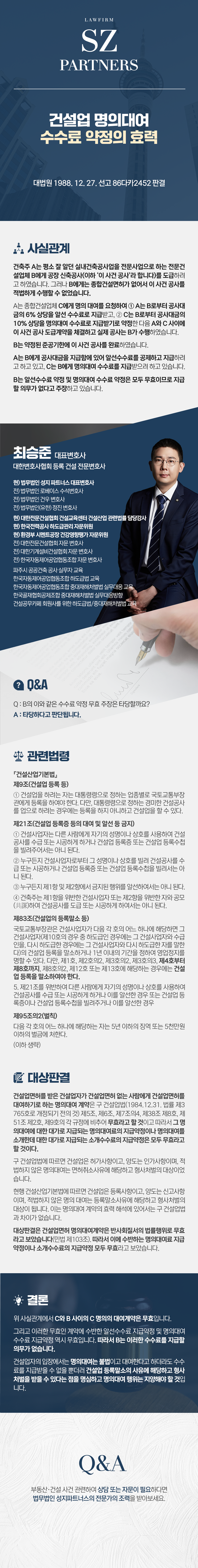 건설업 명의대여 수수료 약정의 효력