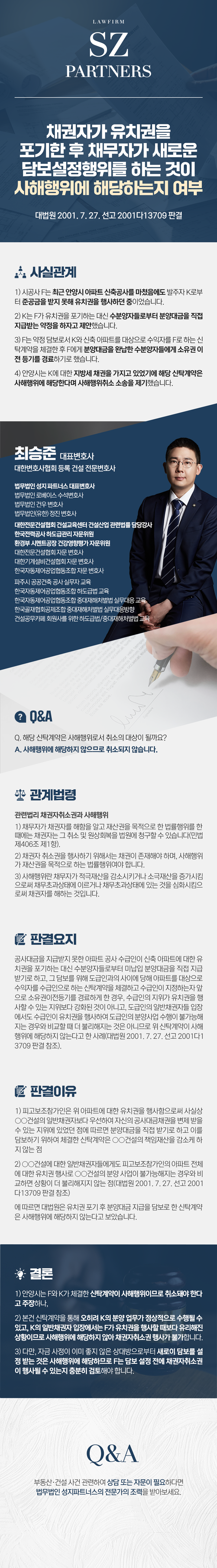 채권자가 유치권을 포기한 후 채무자가 새로운 담보설정행위를 하는 것이 사해행위에 해당하는지 여부