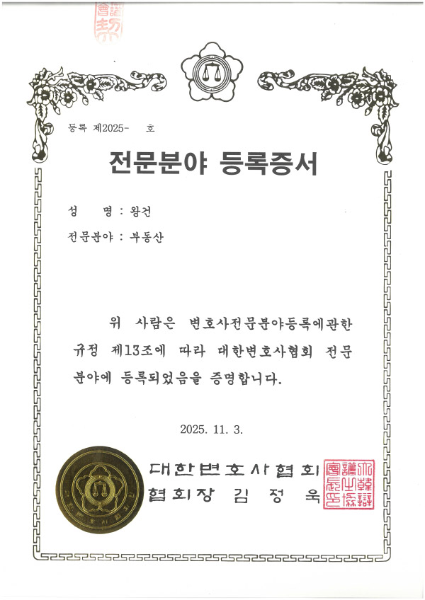 • 대한변호사협회 등록 ‘부동산 전문변호사’